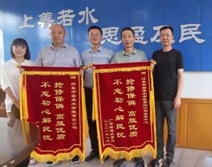 8月23日,廣濟(jì)街道辦事處及德馨園社區(qū)領(lǐng)導(dǎo)及用戶代表給公司送來了錦旗,以表達(dá)感激之情。
